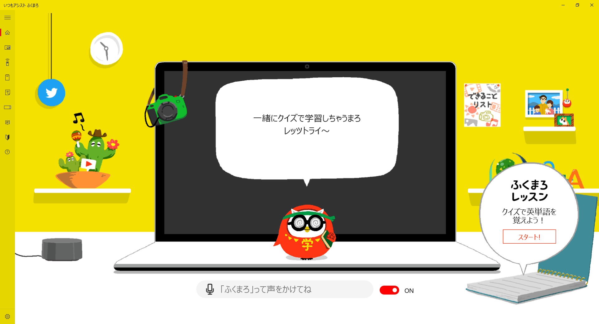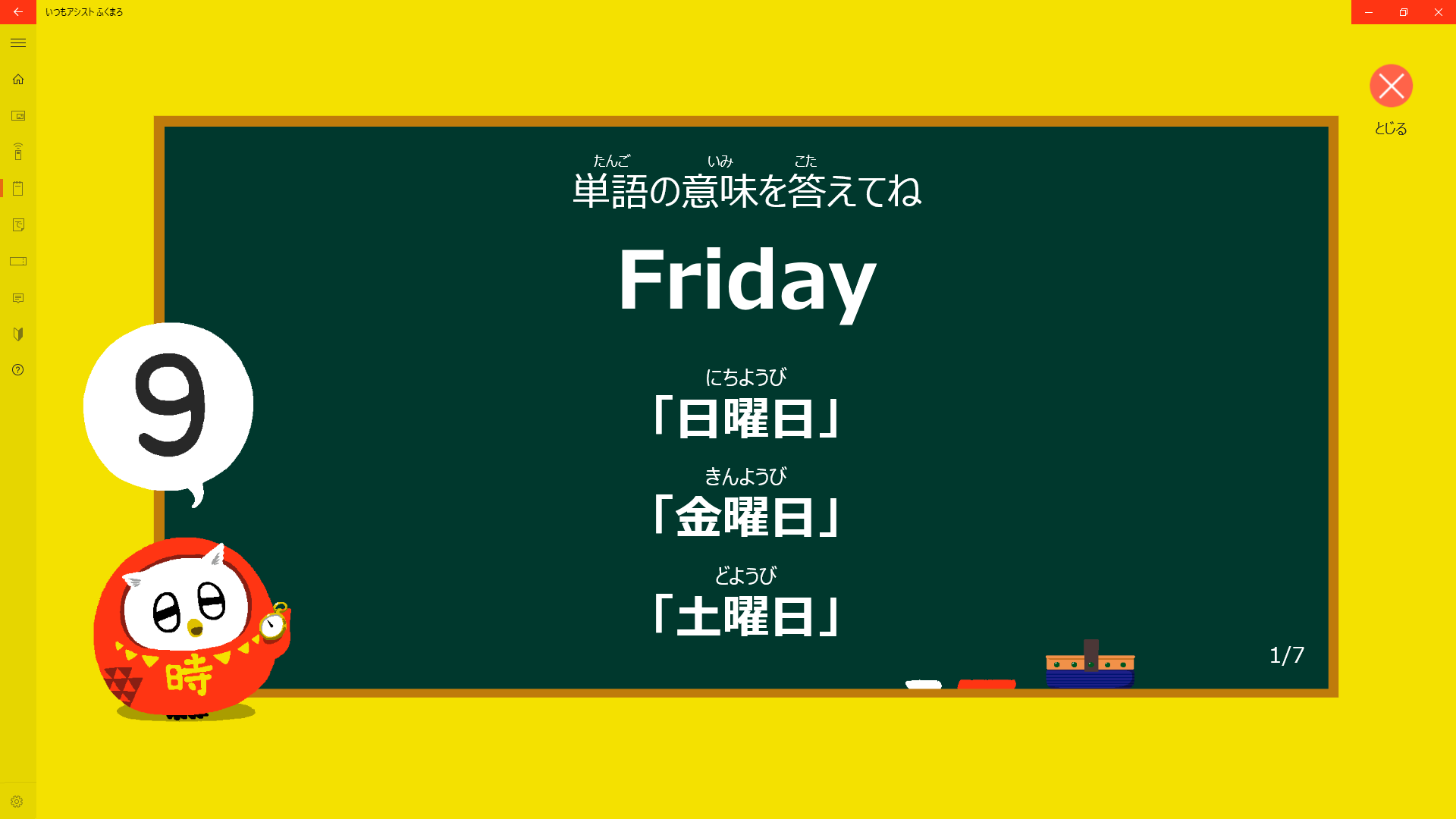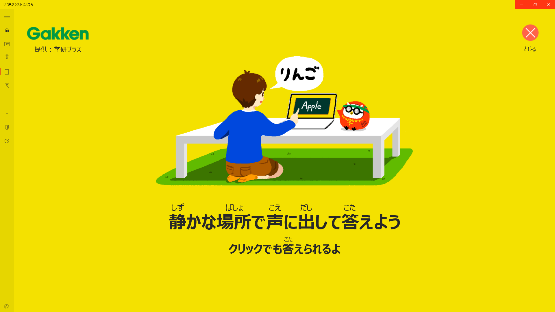 ふくまろレッスンは、声で遊ぶクイズです。クリックしても回答できますが、声に出す方が記憶しやすいのでおすすめです。