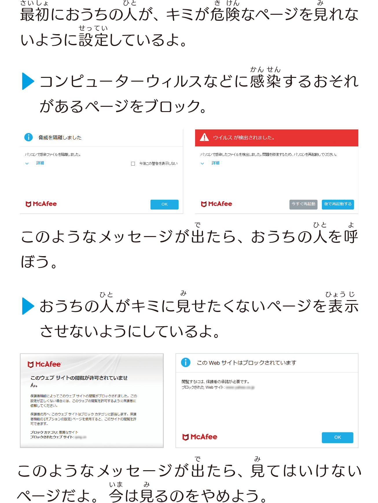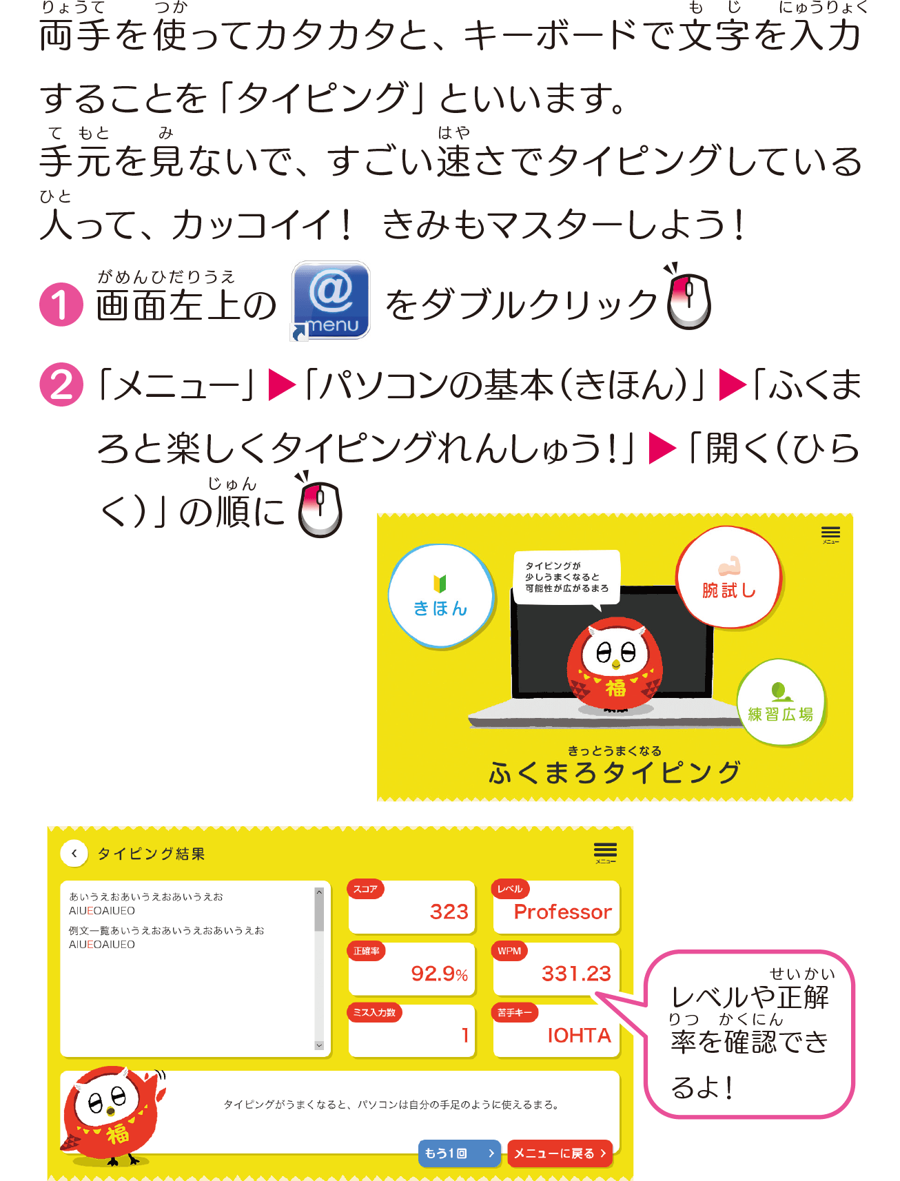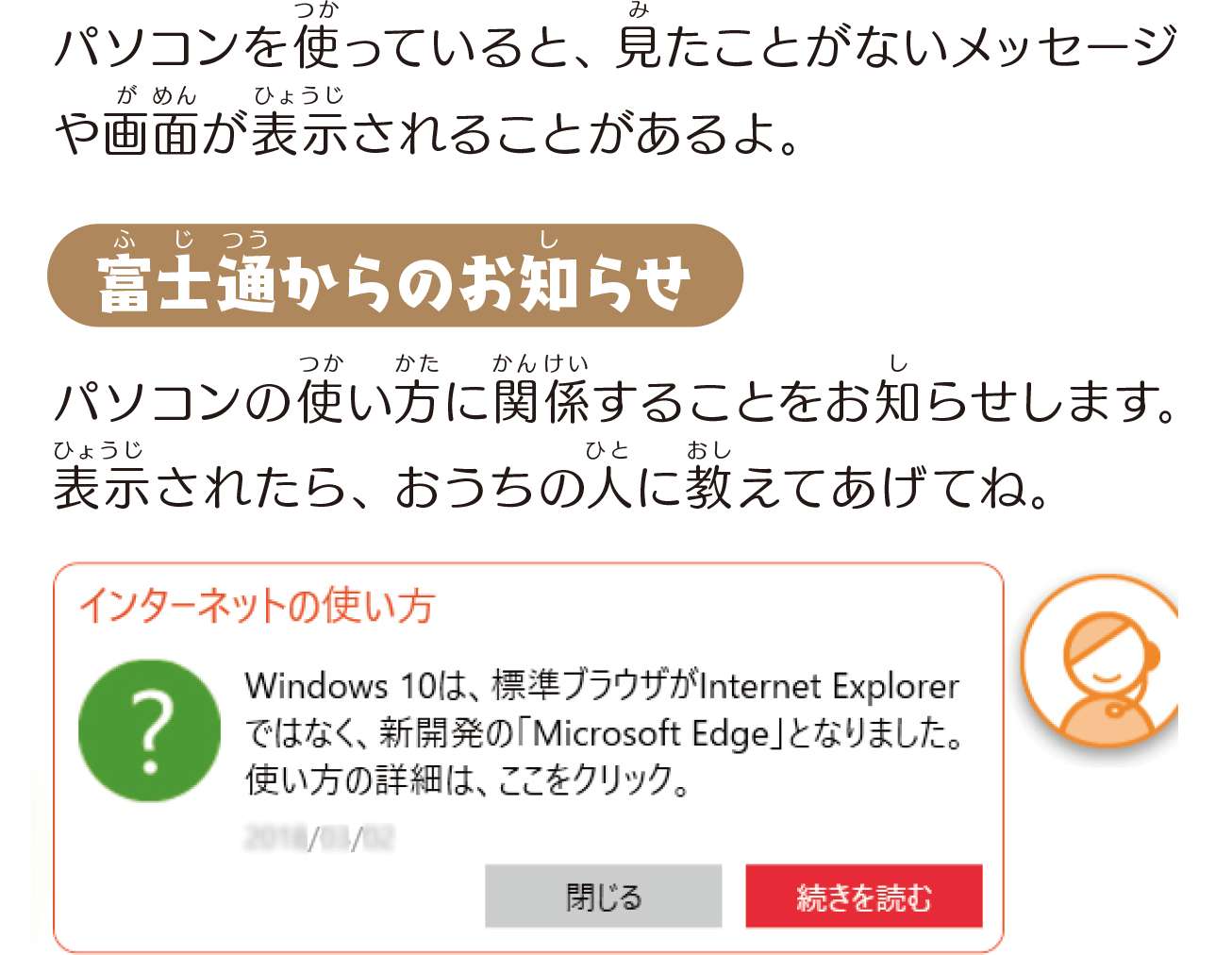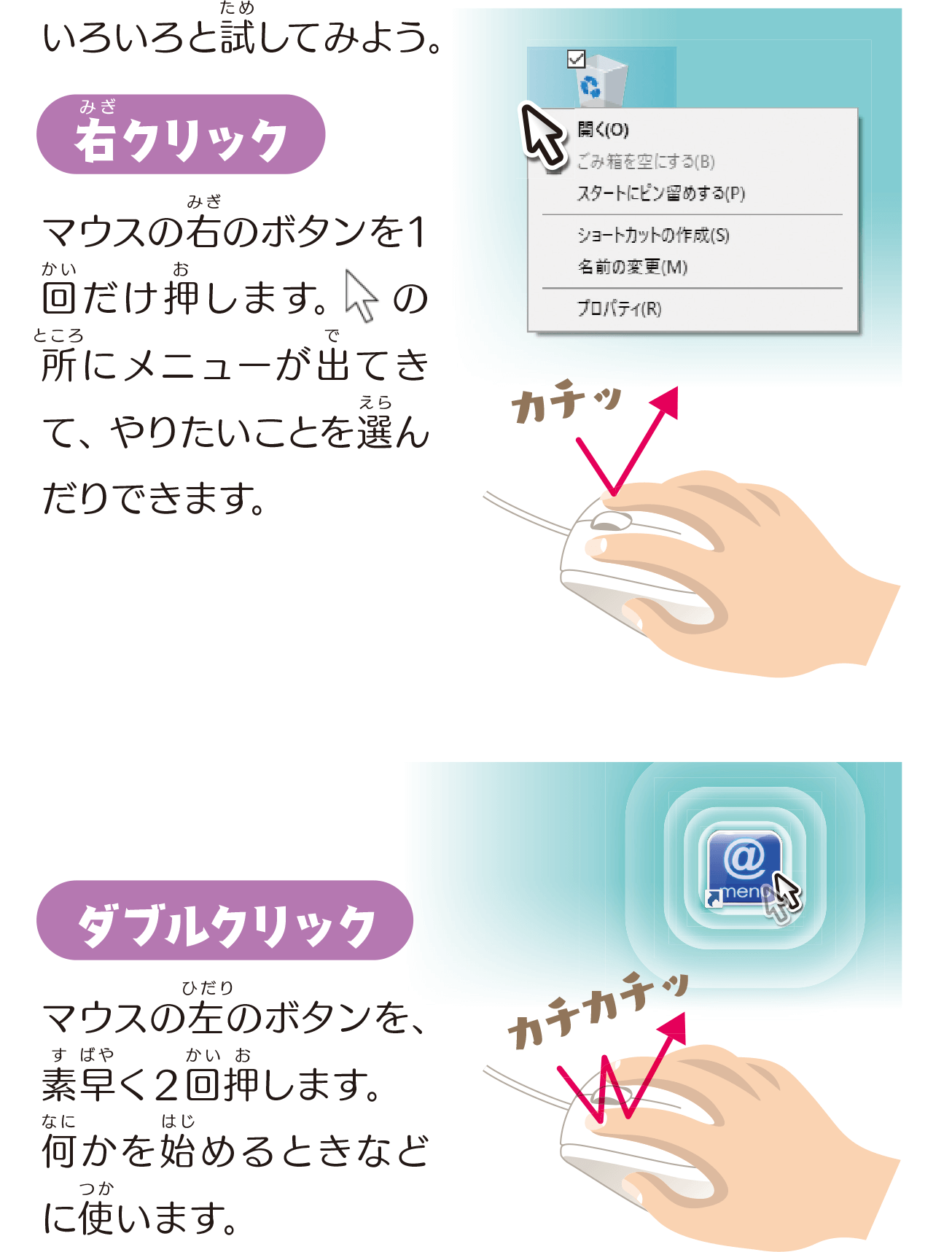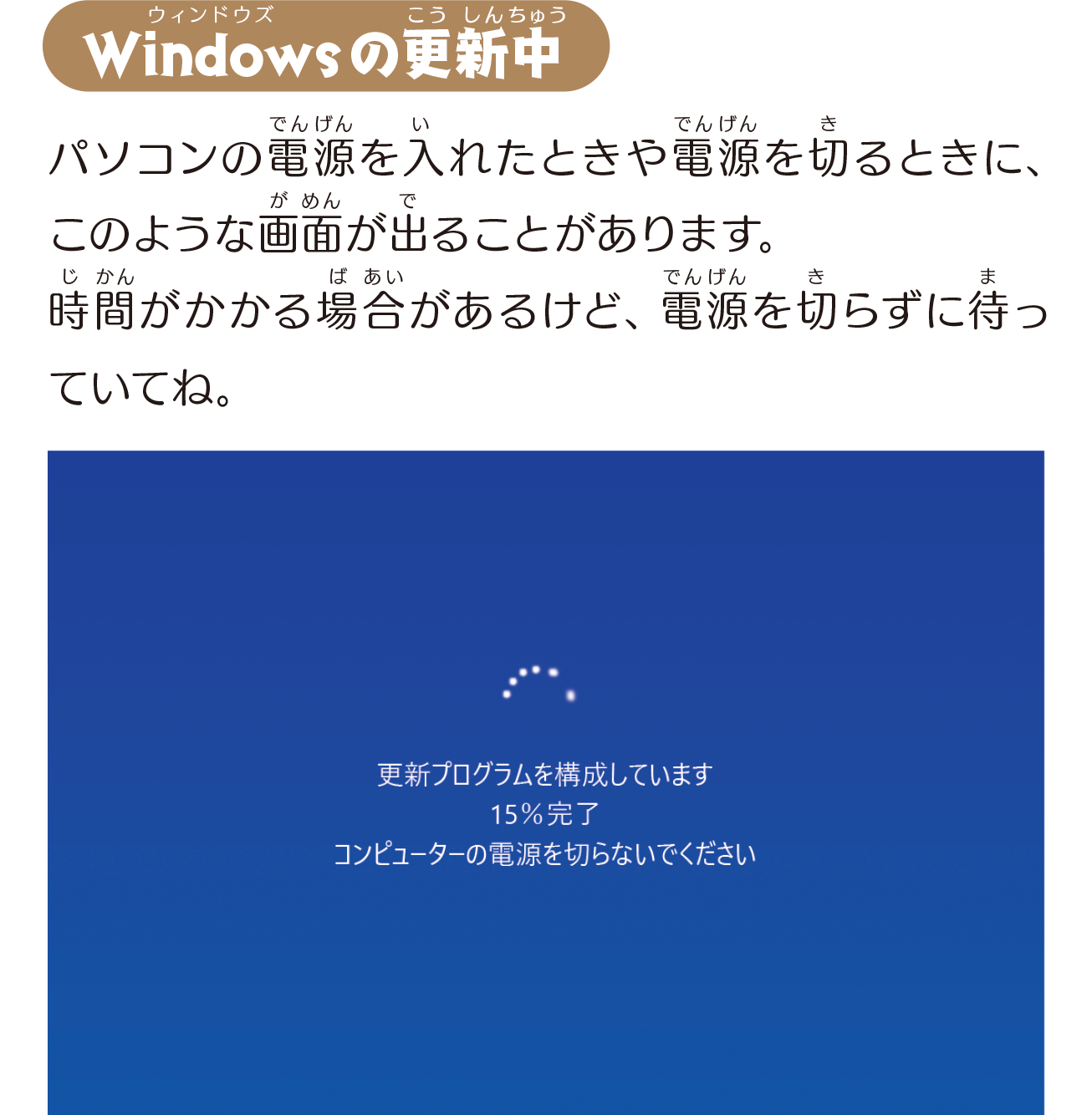 パソコンを使いはじめて、ワクワク、ドキドキしてるかな?たくさんさわって、使い方をおぼえてね。 でもその前に、3つのやくそくがあるよ。