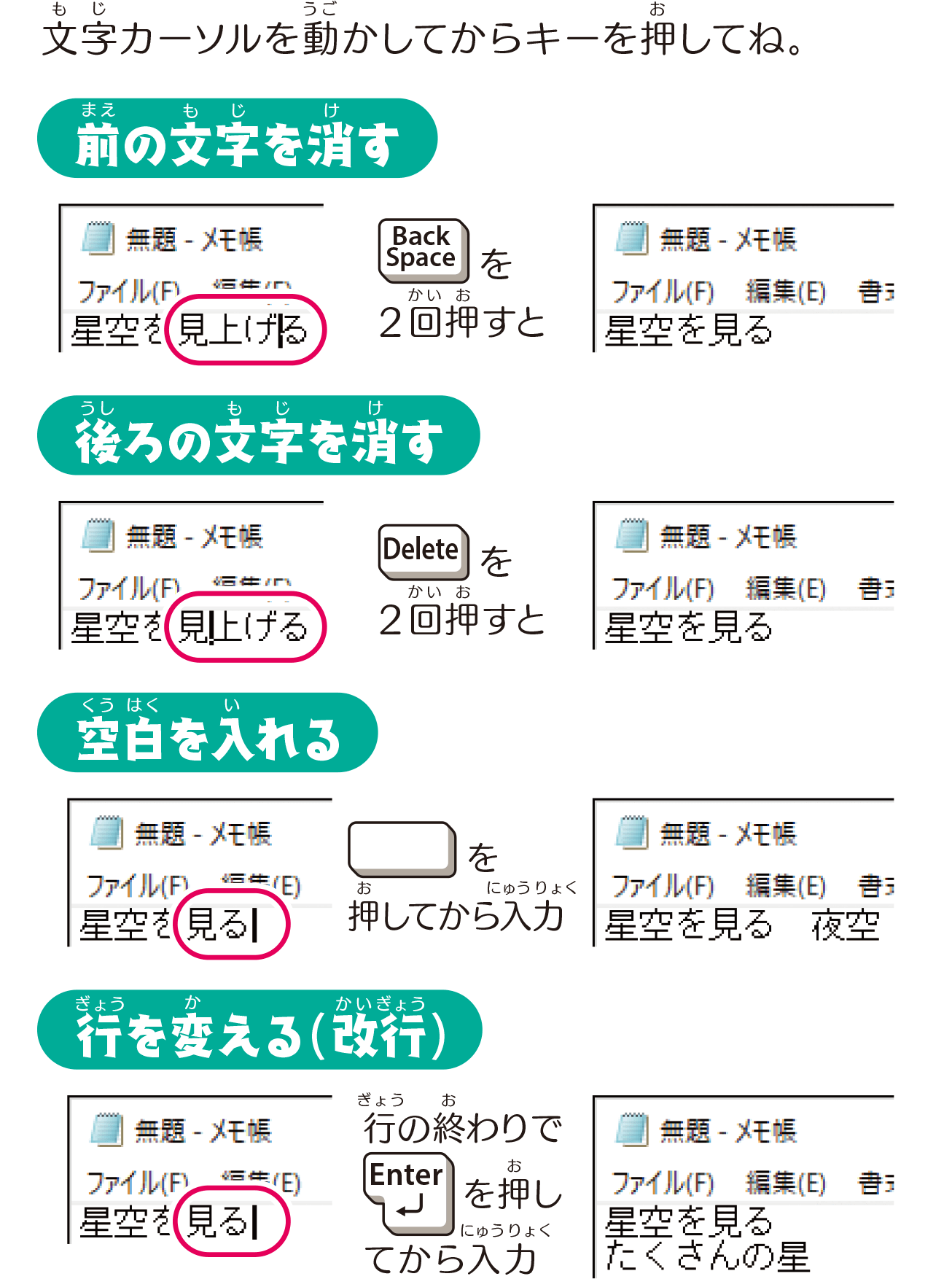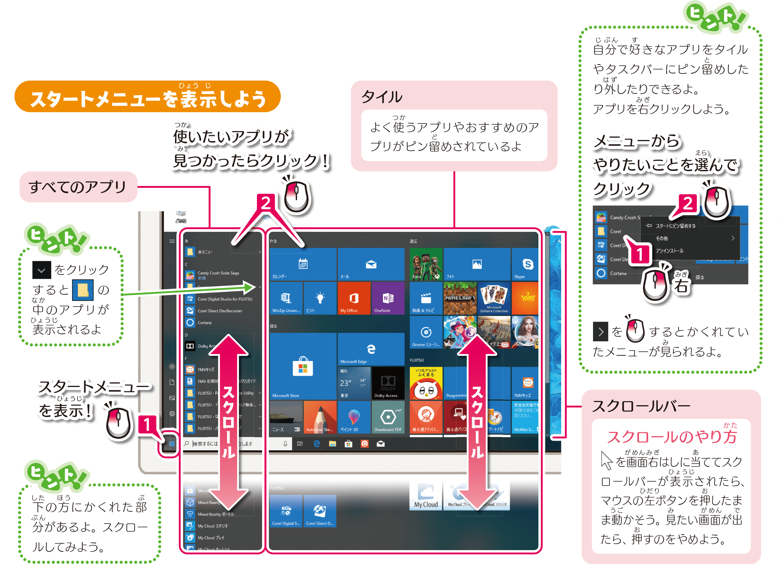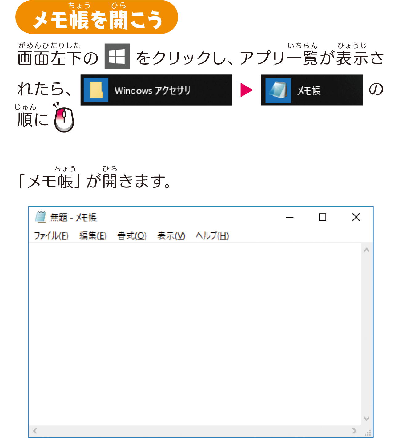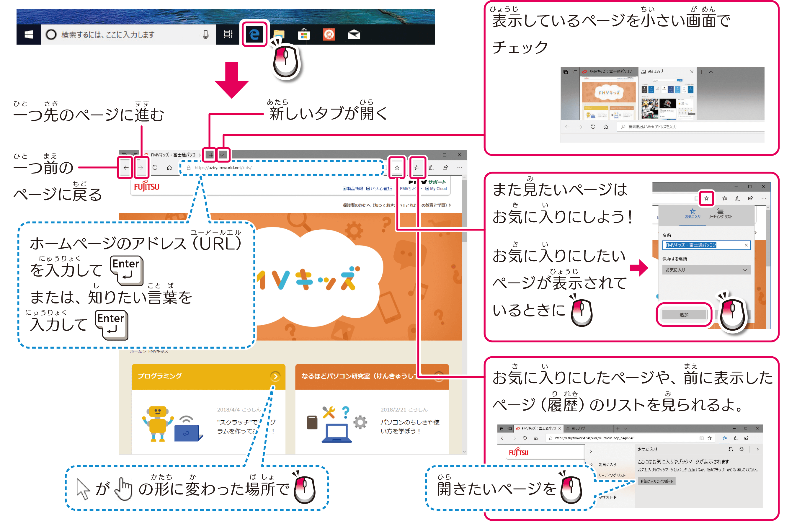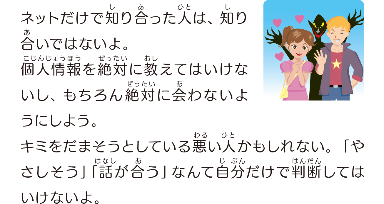 パソコンを使いはじめて、ワクワク、ドキドキしてるかな?たくさんさわって、使い方をおぼえてね。 でもその前に、3つのやくそくがあるよ。