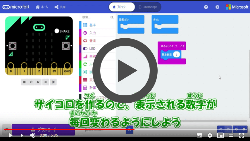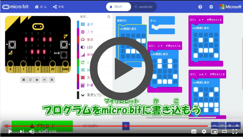 このページでは、YouTuber風のていねいな動画でmicro:bitを使ったプログラミングが楽しく学べます。