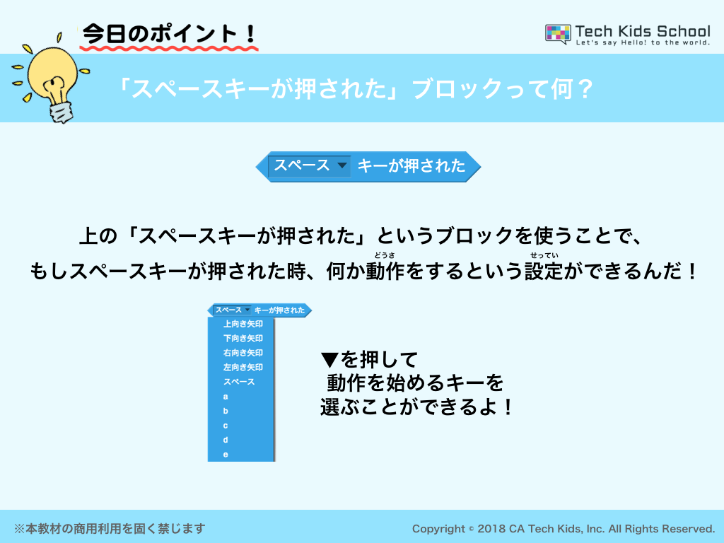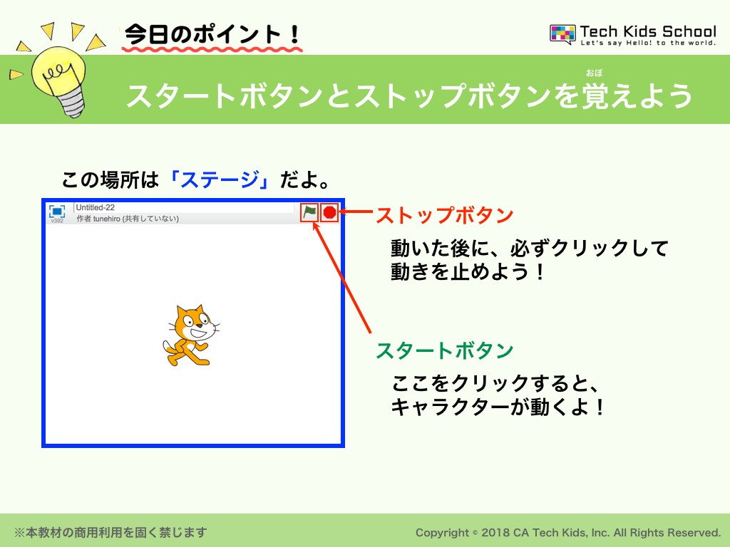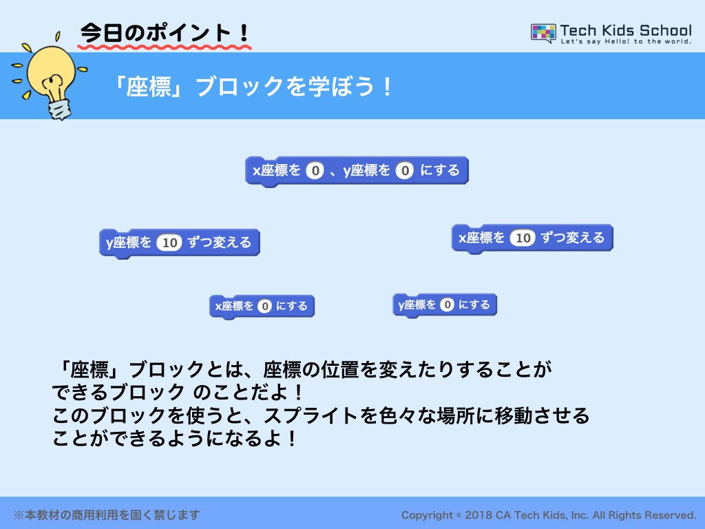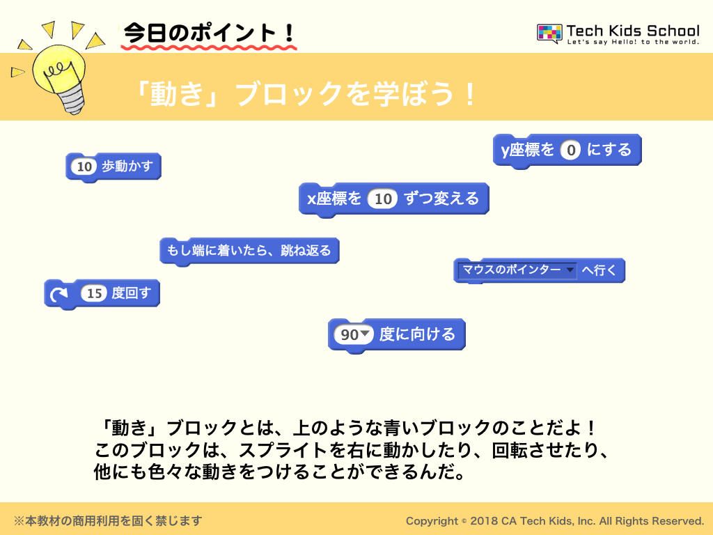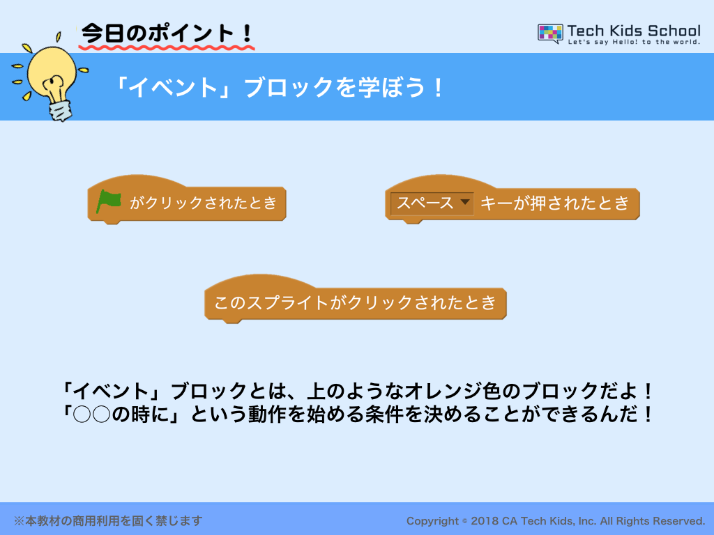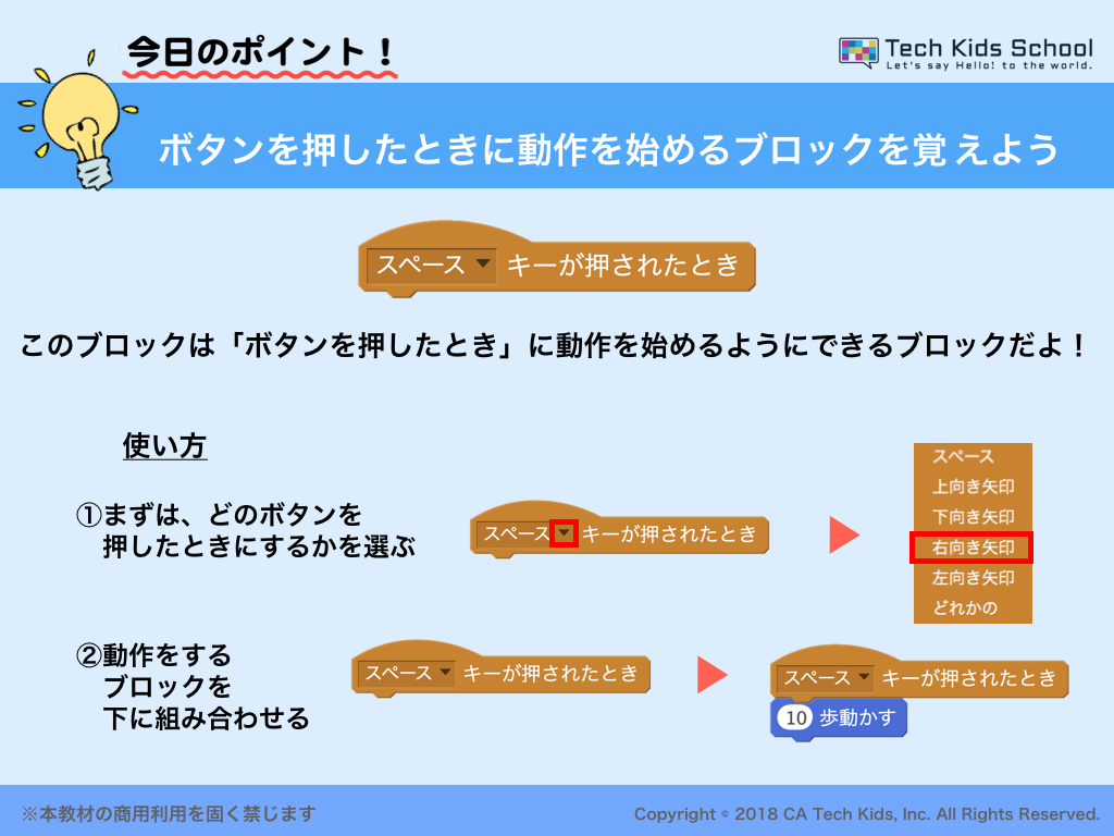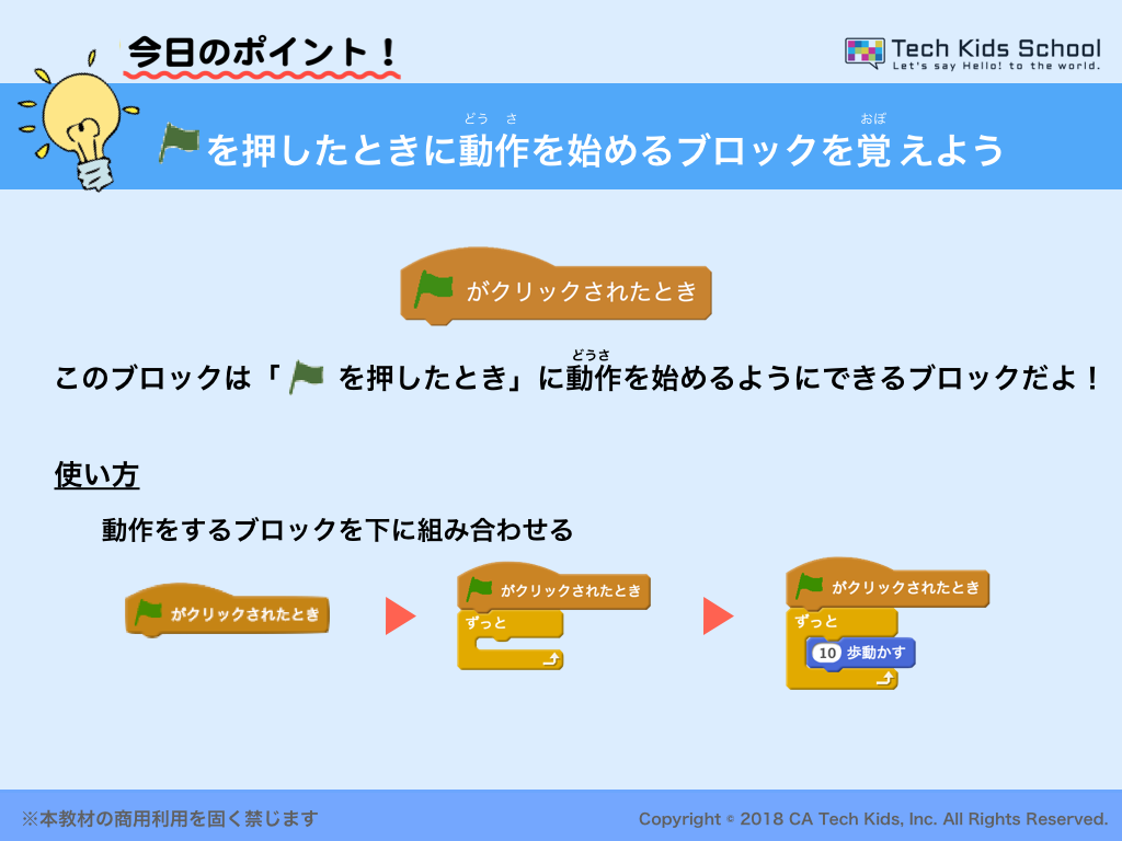 ボタンを押したときに動作を始めるブロックを覚えよう