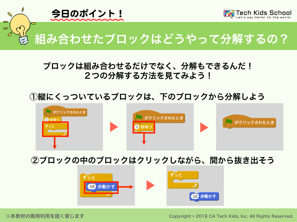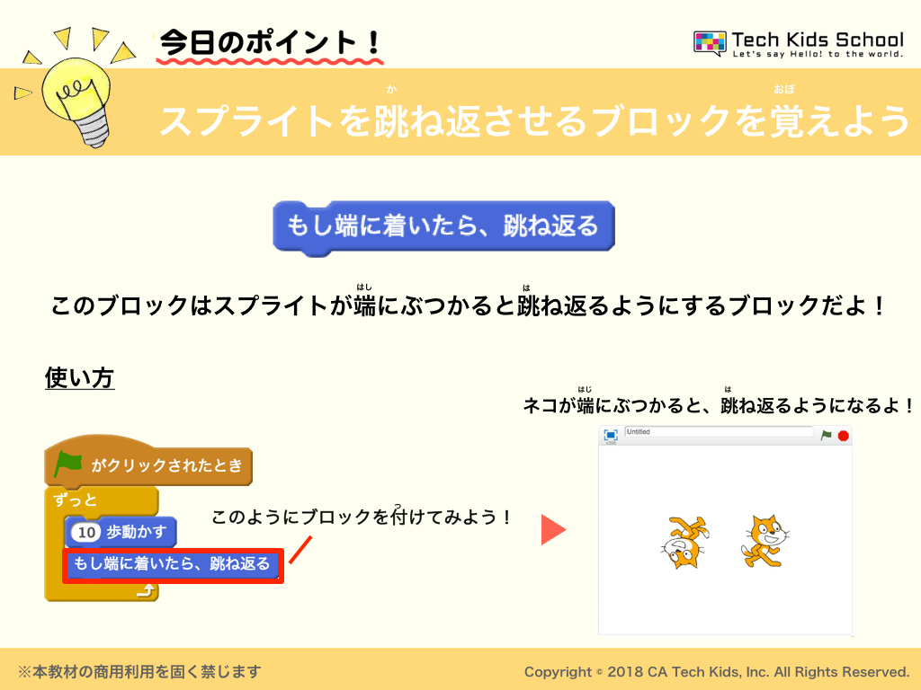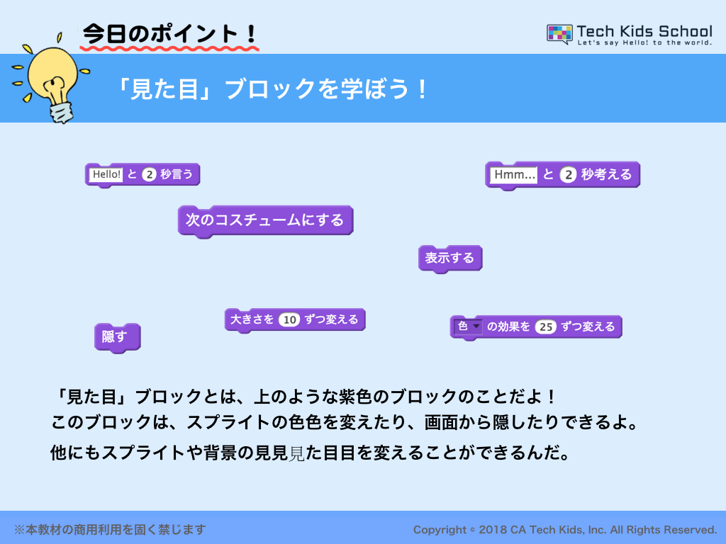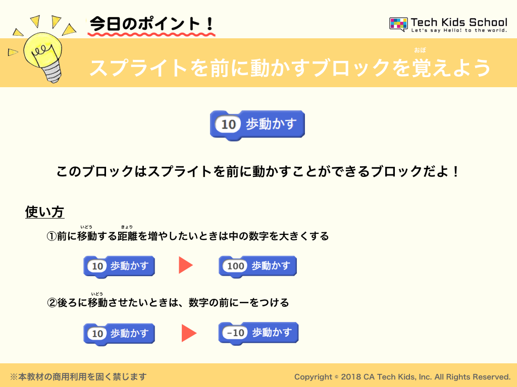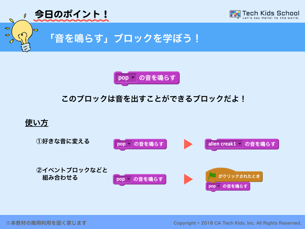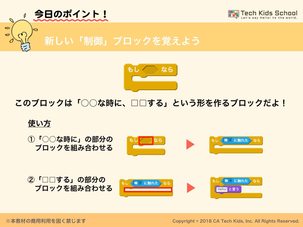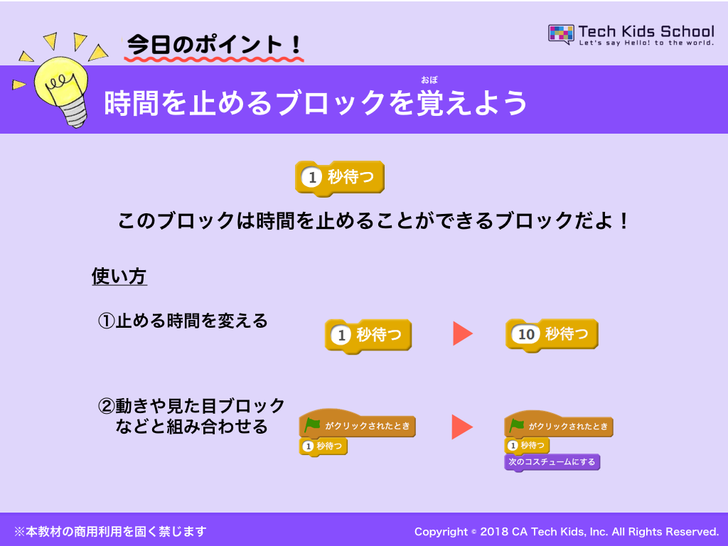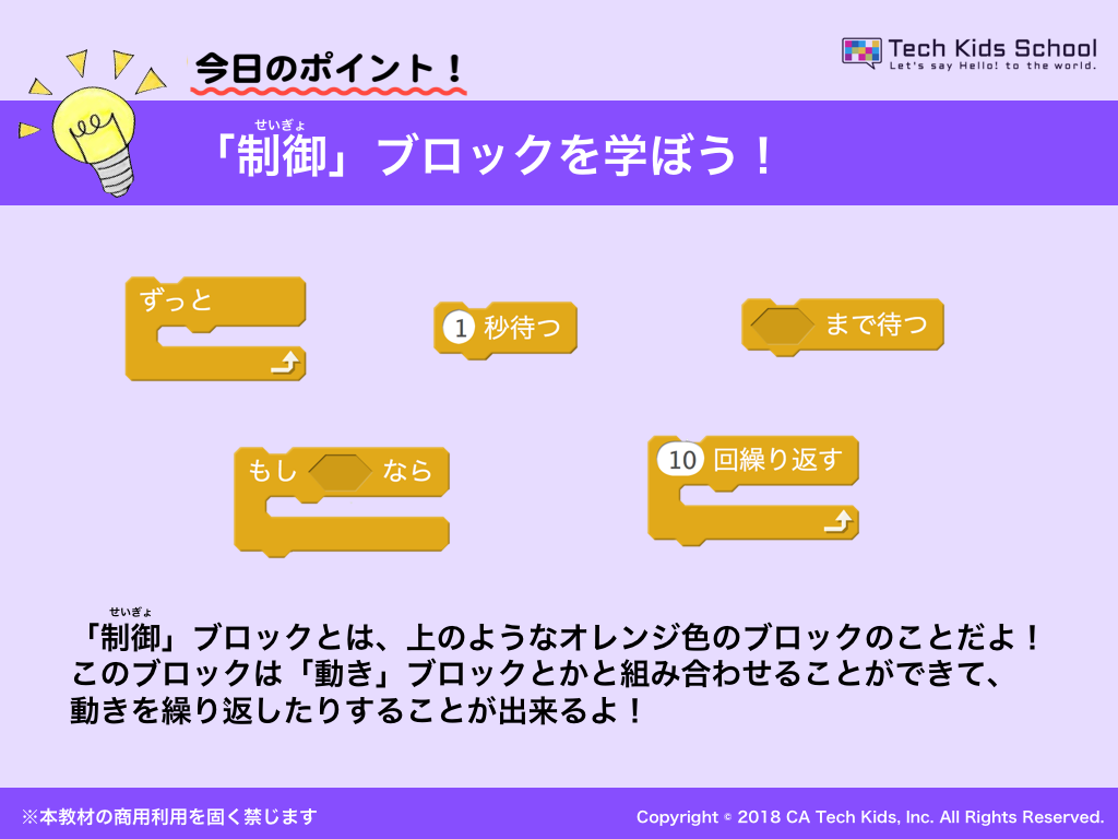 ボタンを押したときに動作を始めるブロックを覚えよう
