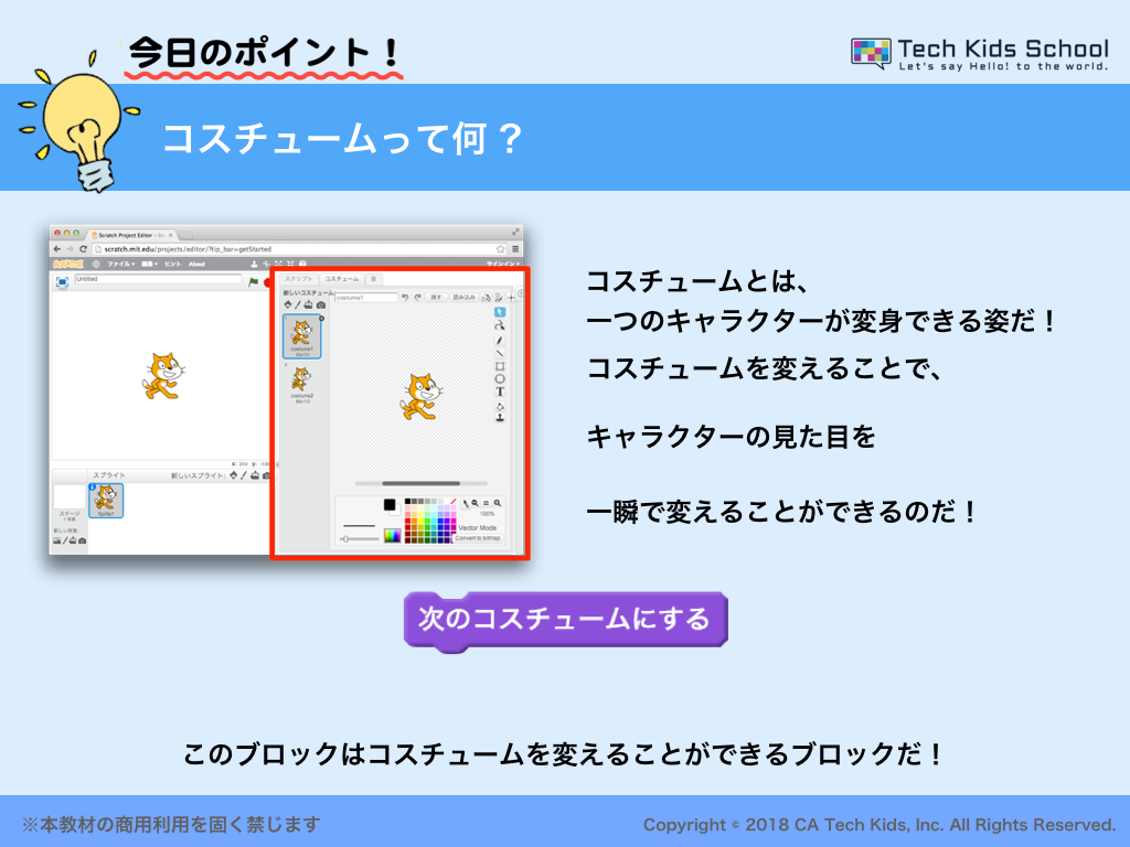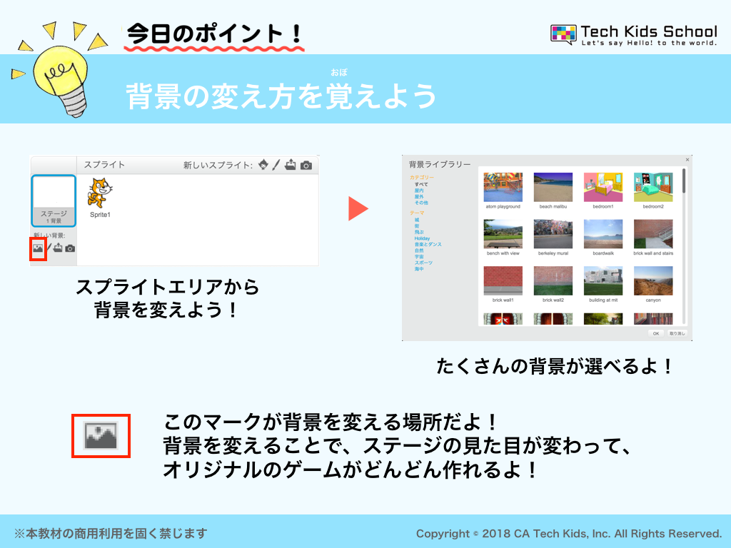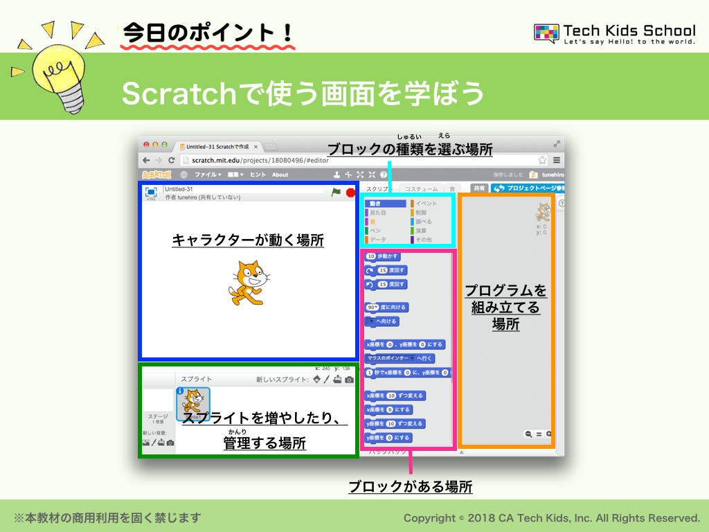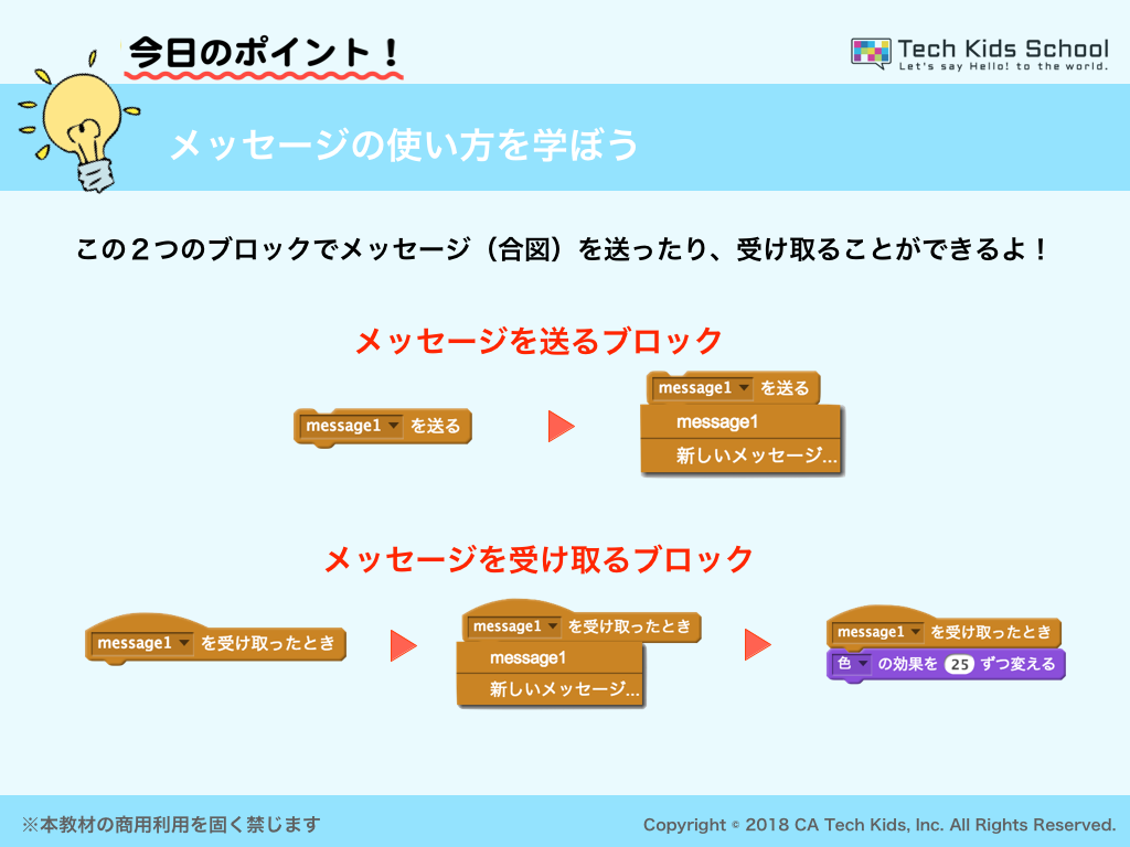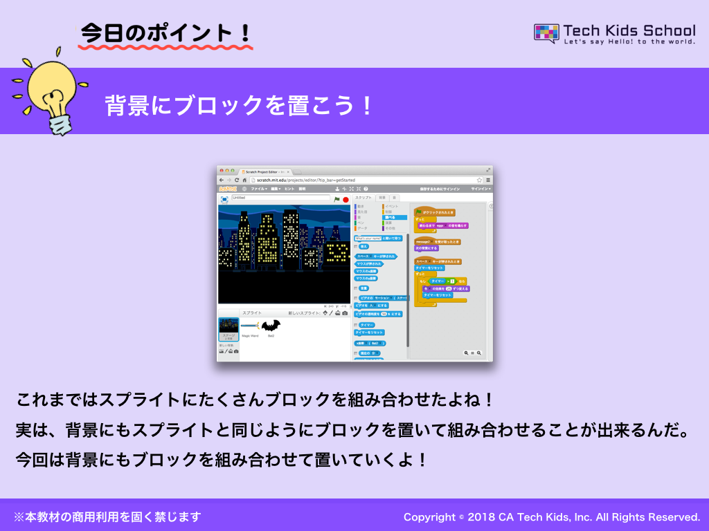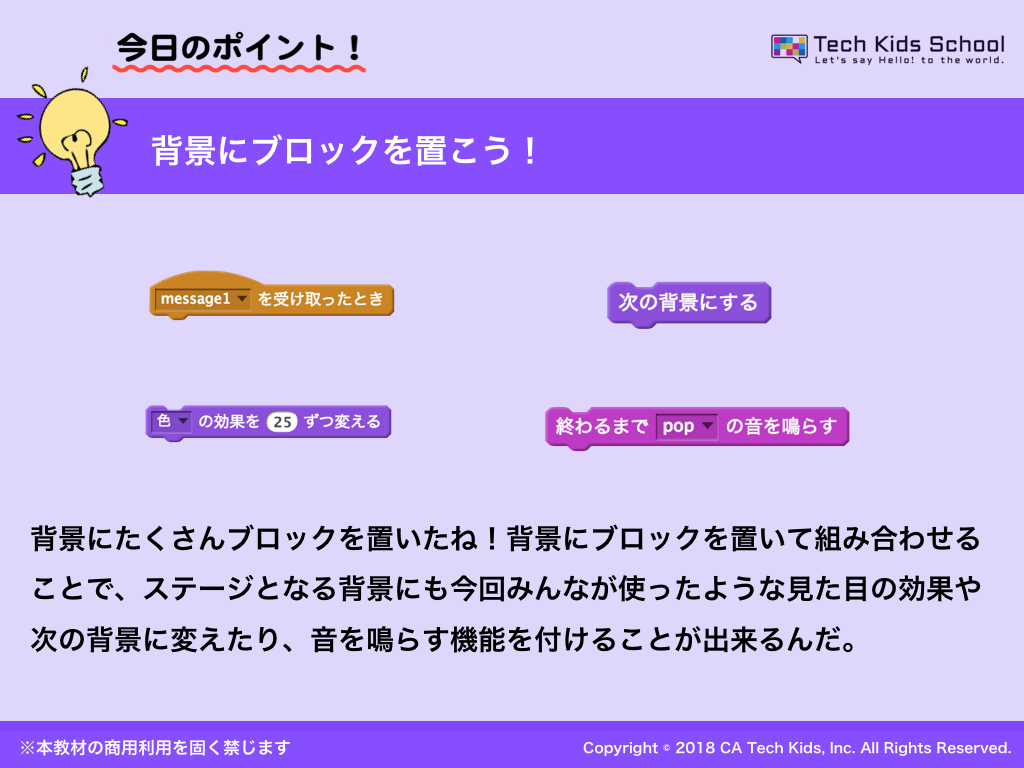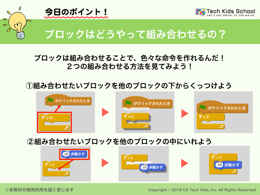 ボタンを押したときに動作を始めるブロックを覚えよう