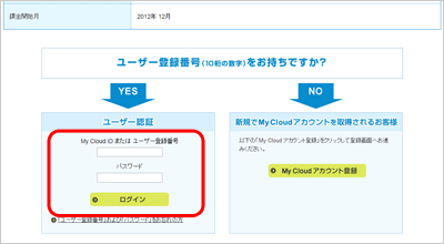 ユーザー登録がお済みの方は、ユーザー登録番号とパスワードを入力し[ログインして次へ]をクリックします。