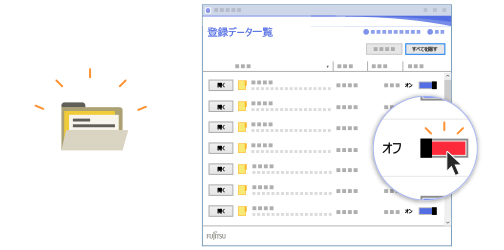 スイッチを「オフ」にすると、元の場所にデータが表示されます。