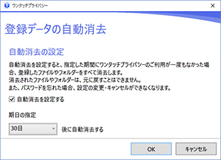 あらかじめ指定した期間にワンタッチプライバシーの利用がない場合は、登録したデータを自動で消去することもできます。