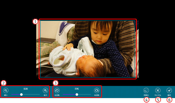 位置調整した状態を破棄してアルバム画面に戻ります。 - (6)確定