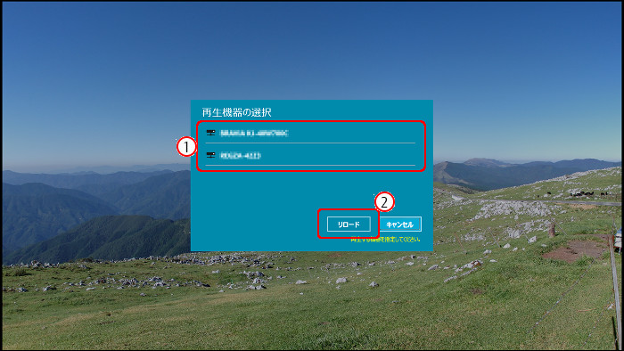 表示されている機器名を選択すると、その機器で他機器再生が始まります。 - (2)「リロード」ボタン