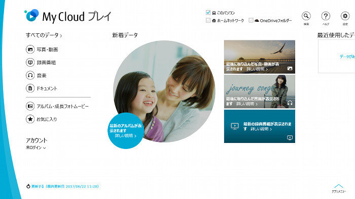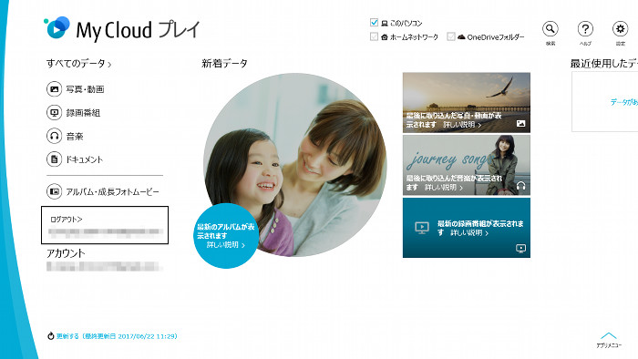 - ログアウトした後も、コンテンツ情報の自動取得は継続され、今後My Cloud プレイをログインせずに使う場合でもパソコン内のコンテンツの最新情報が取得され、画面が更新されます。
