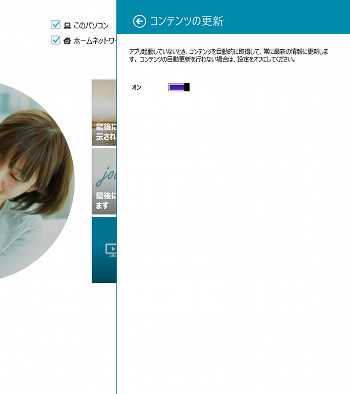 2. 「コンテンツの更新」設定が表示されます。スイッチを「オフ」に変更します。