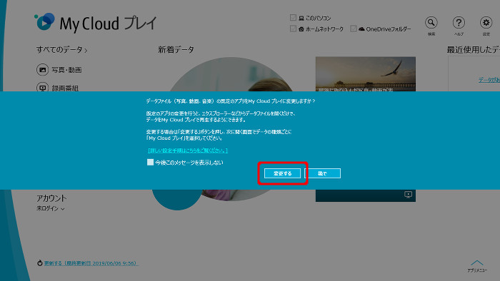 - 既定の「フォト ビューアー」としてMy Cloud プレイが設定されます。「音楽プレーヤー」や「ビデオ プレーヤー」についても同様にMy Cloud プレイを設定してください。