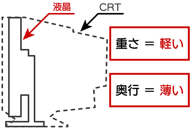 液晶ディスプレイとCRT(ブラウン管)ディスプレイの違い