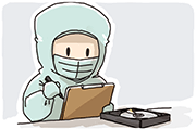 HDDやSSDがどのような状況になっているか現況診断を行い、「データバックアップ」 となるか 「データサルベージ」 となるかを切り分けます。