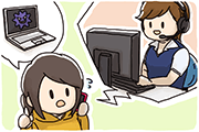 サポートスタッフが、お客様のパソコン状況やウイルス駆除保証サービスに対する相談内容をお伺いします。