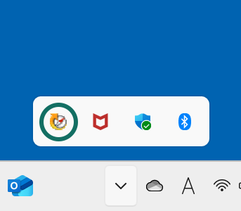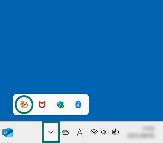 タスクバーの端に表示されている「∧」をクリックし、アップデートナビのアイコンが表示されていれば、アップデートナビは起動しています。