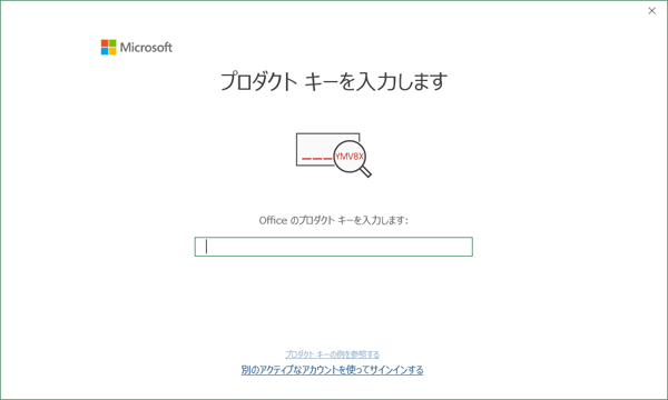 - 「プロダクト キーを入力します」ダイヤログが開きます。