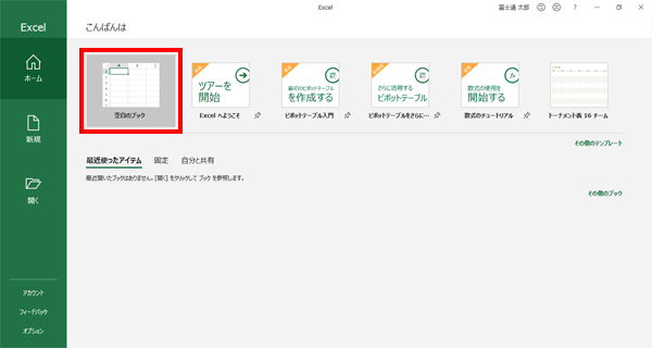 Office のセットアップは終了です。「空白のブック」をクリックすることで新しいブックを作成することができます。