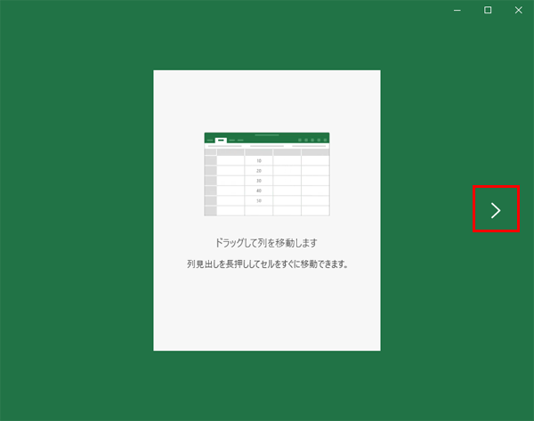 - 使い方が表示されますので、「準備ができました」と表示されるまで矢印をクリックします。
