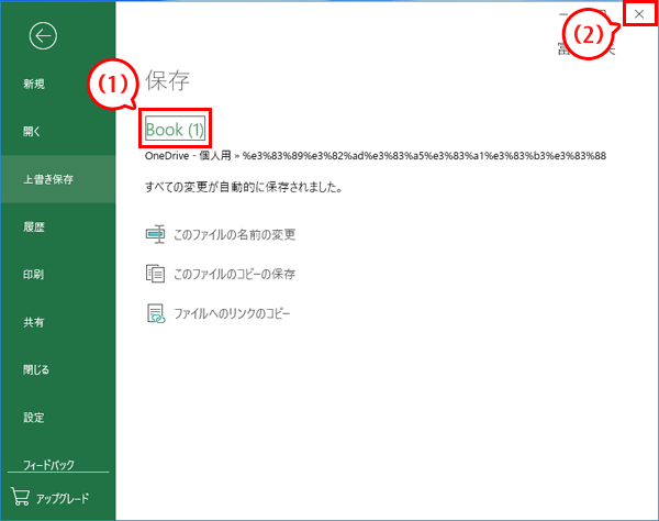 - (1)に表示されている名称でいい場合は、そのまま(2)「×」をクリックして終了してください。
