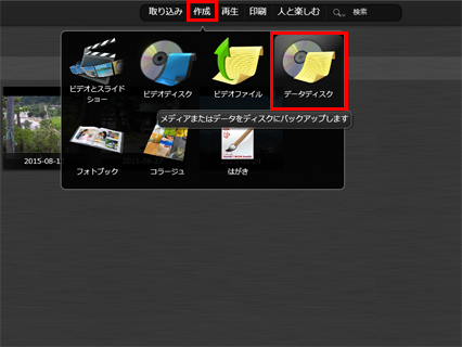 上方の「作成」、「データディスク」の順にクリックします。