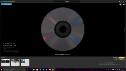 「空のディスクを挿入してください」と表示されるので、ディスクトレイのボタンを押してトレイを開け、ディスクを挿入します。
