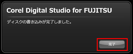 書き込みが終了するとディスクが排出されるので、「完了」をクリックして終了します。