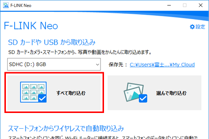 パソコンにSDカードを挿入すると、F-Link Neoが立ち上がります。