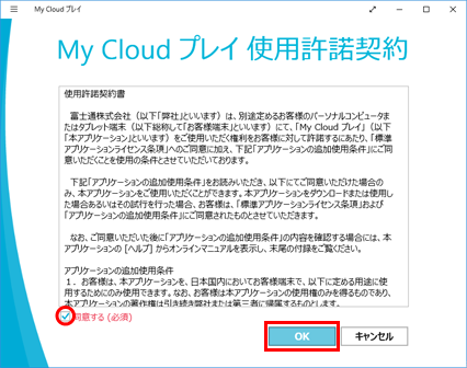 初めてご利用の際には、使用許諾画面が出ますので、「同意する」にチェックを入れて、「OK」をクリックします。