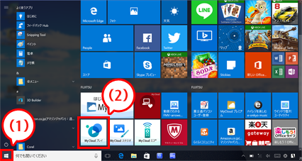 (1)スタートボタンをクリックし、(2)「My Cloudプレイ」をクリックします。 表示されていない場合は、上下にスクロールしてください。