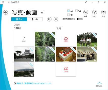 取り込んだ写真が日付のフォルダごとに表示されます。