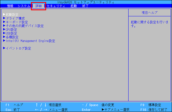 音が鳴らなくても「InsydeH20 セットアップユーティリティ」の画面が表示されたら指を離します。