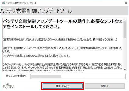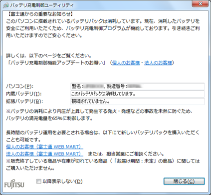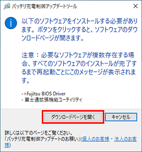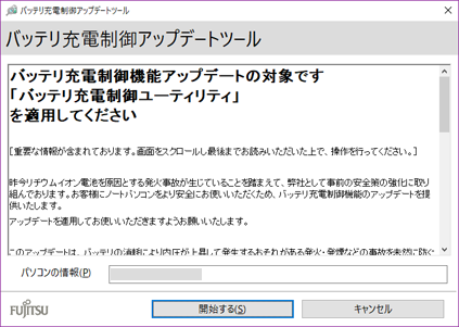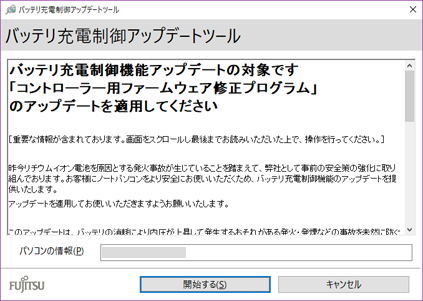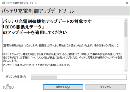 ノートパソコンをより安全にお使いいただくため、バッテリ充電制御機能のアップデートをお願いしています。