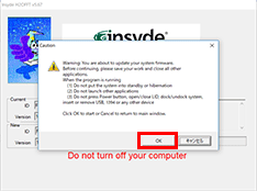 アップデートプログラムが準備できていない状態です。「OK」ボタンをクリックして終了してください。