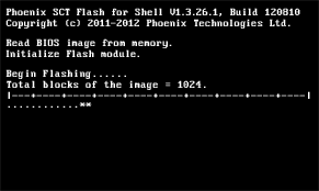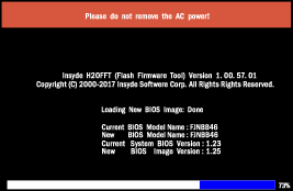 BIOSアップデート実行中、次のような画面が表示されます。自動的に終了するまで電源を切らずにお待ちください。