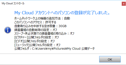 My Cloud アカウントを取得していない場合は、「アカウント新規登録」をクリックして画面の指示にしたがって必要事項を入力してください。