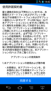 - 使用許諾契約書が表示されますので、内容を確認して「同意する」をタップしてください。
