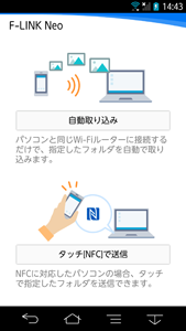 - スマートフォンにF-LINK Neoがインストールされたら、F-LINK Neoのアイコンをタップしてアプリを起動してください。