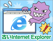 インターネットには、表示するだけでウイルスに感染する悪質なWebページもあります。中には、古いInternet Explorerをターゲットとして、弱点を攻撃するプログラムを実行するWebページもあります。そのため、古いInternet Explorerを使い続けるのは危険なのです。