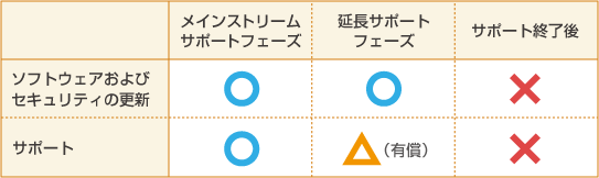 各種サポートと、セキュリティ更新プログラムの配布が行われる期間が設定されています