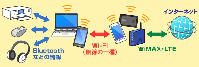 Wi-Fiは、パソコンなどの機器をインターネットに接続する際に使う電波ですが、正確には「パソコンやタブレットなどの機器」と「アクセスポイント」をつないでいます。Wi-Fiは、「無線LAN(ラン)」と呼ぶこともあります。
