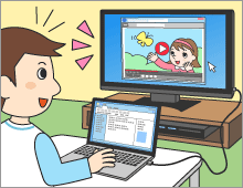 ふだんノートパソコンの画面で見ている写真や動画を、大画面のデジタルテレビで見てみませんか?最近では、多くのパソコンが、HDMI(エイチディーエムアイ)という接続規格の出力端子を備えています。HDMIに対応した機器同士なら、ケーブル1本で簡単に接続することができます。