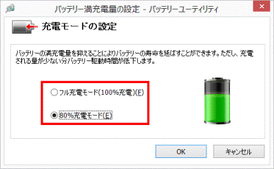 「80%充電モード」を選択し、「OK」ボタンをクリックします。