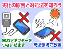 パソコンやスマートフォンに限らず、他の機器でもバッテリーが劣化する理由は基本的に同じです。次のような方法で対処していきましょう。