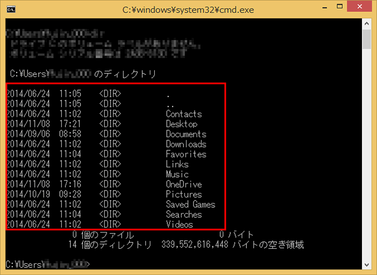 「コマンドプロンプト」でフォルダーを確認している画面です。この画面では、コマンドを打ち込むことで、ファイルを開いたりコピーしたりといった操作が可能です。しかし、文字列だけなので、なかなか抵抗があるかと思います。