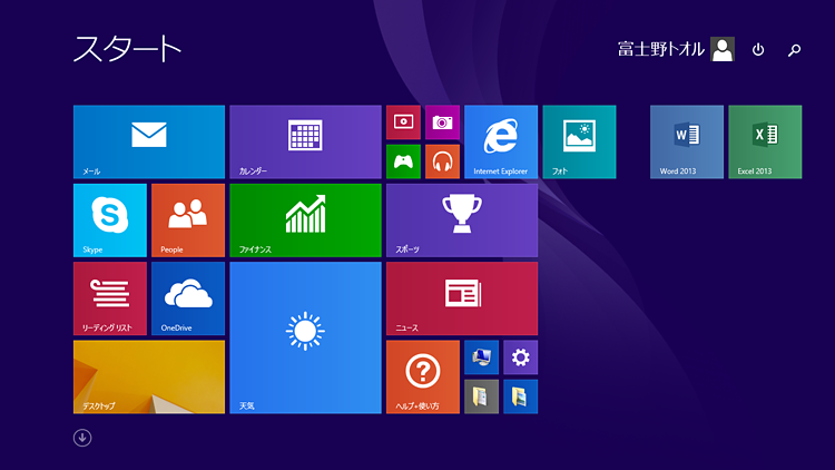 「スタート画面」と「デスクトップ画面」が用意されています。マウスだけでなく、タッチパネルでも操作しやすいような画面となっています。