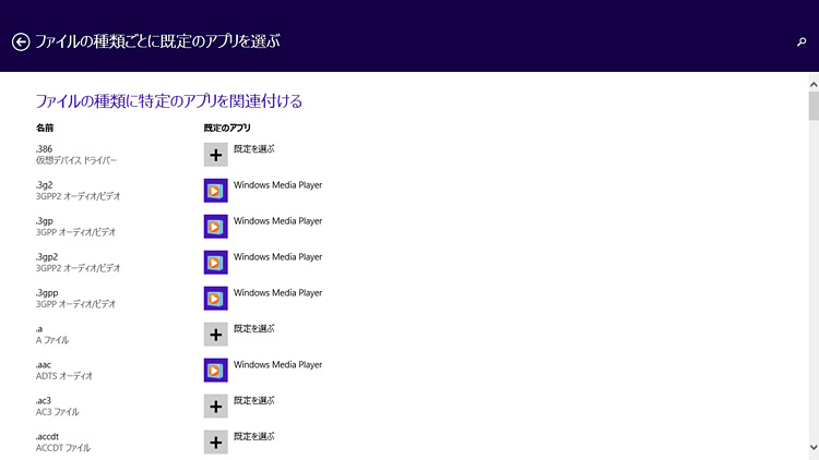 ファイルの種類と既定のプログラムの一覧が表示されます。