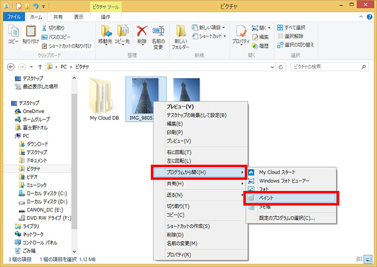開きたいファイルを右クリックして[プログラムから開く]を選択し、利用したいアプリを選択します。