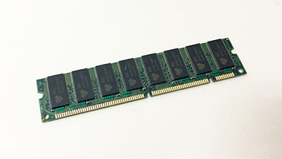 メモリは、データを一時的に記憶する装置です。使用するソフトウェアや、閲覧する文書ファイルなどをハードディスクから読み出して、一時的に記憶します。そこにCPUがアクセスして、データを処理するのです。