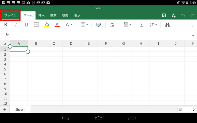 「ファイル」タブをタップします。