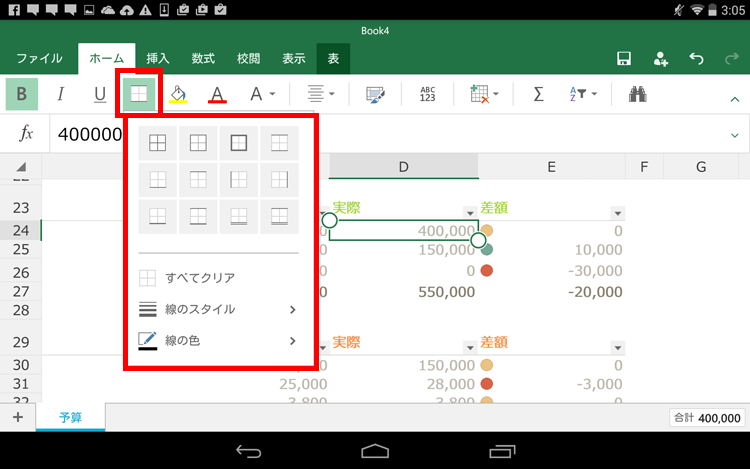 「ホーム」タブで、表の罫線を設定できます。